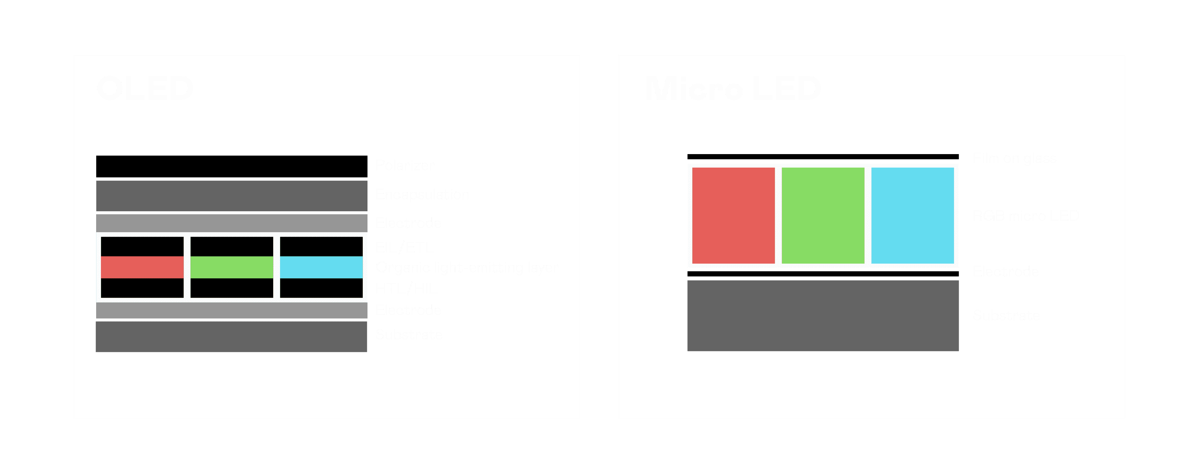 以 LED 做为显示画素,,,可让 LED 的发光效率发挥到极致,,,,从而让显示器具备优异的亮度表现,,,不论是在户外或室内,,,,均具备出众的显示效果。。。同时,,,,与使用有机材料的 OLED 相比,,,LED 具备更稳定、、寿命更长的特性,,,不仅不会有画面烙印问题,,而且更不容易出现故障、、、、坏点。。。